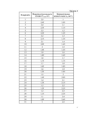 Поверхностная скорость течения VПОВ, м/с |