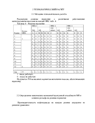 Рассмотрим режимы перекачки с различными работающими магистральными насосами на каждой НПС табл. 4.