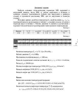 Исходные данные: расчётная температураTp; свойства нефти ρ20, ν20, ν50, производительность представлены в таблице 1, а профиль трассы, её длина и перепады высот в таблице 2. Рабочее давление Pp принять в соответствии с нормами технологического проектирования магистральных нефтепроводов.