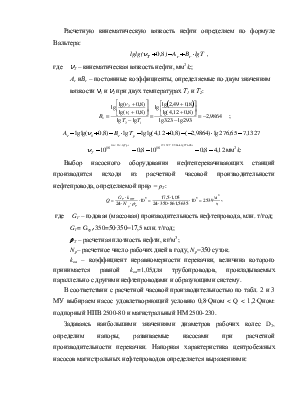 Расчетную кинематическую вязкость нефти определяем по формуле Вальтера: