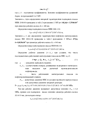 Задаваясь наибольшими значениями диаметров рабочих колес D2, определим напоры, развиваемые насосами при расчетной производительности перекачки. Напорная характеристика центробежных насосов магистральных нефтепроводов определяется выражениями: