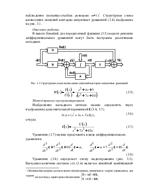 В пакете Simulink для передаточной функции (3.5) модели решения дифференциальных уравнений могут быть построены различными методами.