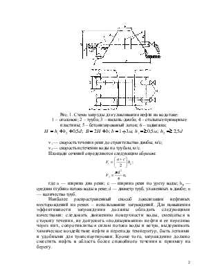нефтесборщиками с таким расчетом, чтобы их суммарная производительность была равна возможному объему поступающей нефти. Последний ряд боновых заграждений можно устанавливать по замкнутой схеме («кошель») для локализации остаточной нефти (рис.2,в).