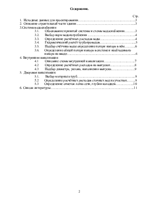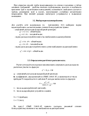 В данной курсовой работе запроектирована система холодного водоснабжения шестиэтажного жилого дома квартирного типа с централизованным горячим водоснабжением, оборудованную: умывальниками, ваннами, мойками. (Горячая вода нагревается централизованно в водонагревателе и распределяется по специальной системе потребителям, этот вопрос в курсовой работе не рассматривается).