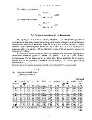 Его проводят с помощью таблиц ВОДГЕО. Для найденных расчётных расходов воды назначают диаметры труб на расчётных участках, исходя из наиболее экономичных скоростей движения воды. В магистралях трубопроводах и стояках скорость воды рекомендуется принимать не более