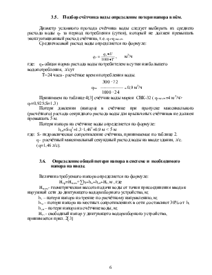 3.5. Подбор счётчика воды определение потери напора в нём……….6