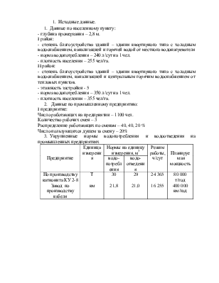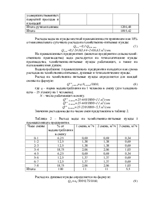 Таблица 2 – Расход воды на хозяйственно-питьевые нужды I промышленного предприятия.