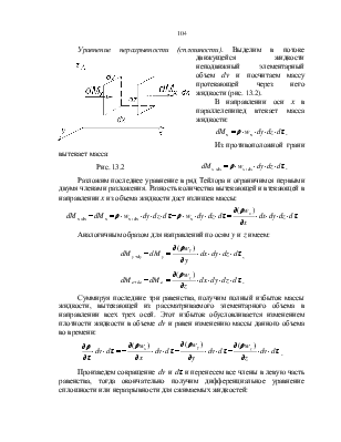 Так как в уравнение движения (13.3) входит еще одна неизвестная величина – плотность, то система уравнений по-прежнему не является замкнутой. Необходимо добавить еще одно уравнение, характеризующее изменение массы жидкости.