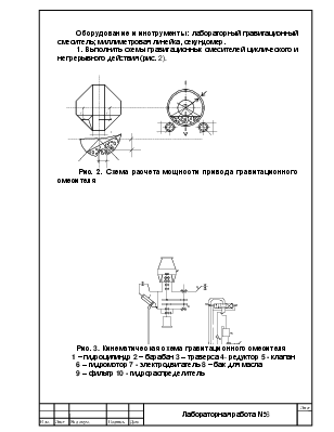 Цели работы: изучить устройство гравитационного смесителя; освоить метод расчета параметров рабочего процесса и производительности смесителя.