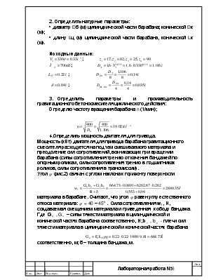 • диаметр Dб (м) цилиндрической части барабана; конической Dк (м);