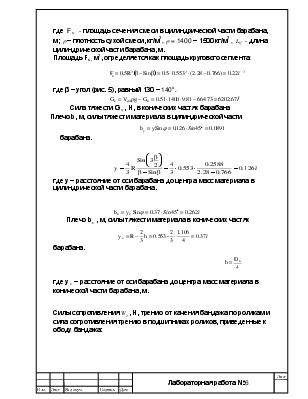 где  F  - площадь сечения смеси в цилиндрической части барабана, м; – плотность сухой смеси, кг/м3, = 1400 – 1500 кг/м3 ,  - длина цилиндрической части барабана, м.
