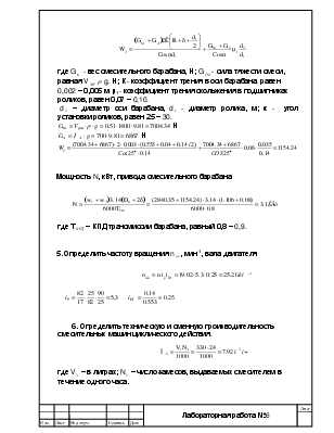 Угол  (рис.2) связан с углом наклона к горизонту поверхности материала в барабане. Считают, что угол  равен углу естественного откоса материала:  = 40 – 45о .  Сила сопротивления w1 , Н, создаваемая смещением материала и приведенная  к ободу бандажа.