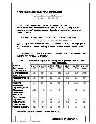 где V – в литрах; N – число замесов, выдаваемых смесителем в течение одного часа.