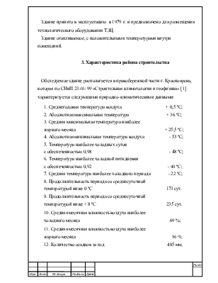 Обследуемое здание располагается в правобережной части г. Красноярска, которая по СНиП 23-01-99 «Строительная климатология и геофизика» [1] характеризуется следующими природно-климатическими данными: