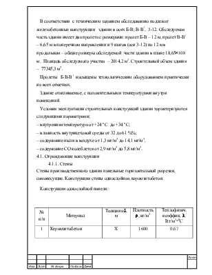 Обследуемая часть здания имеет два пролета со следующими размерами: пролет Б-В – 12 м, пролет В-В1 – 6,65 м в поперечном направлении и 9 шагов (оси 3-12) по 12 м в продольном – общие размеры обследуемой части здания в плане 18,65´108 м. Площадь обследуемого участка здания – 2014,2 м2. Строительный объем – 77345,3 м3.