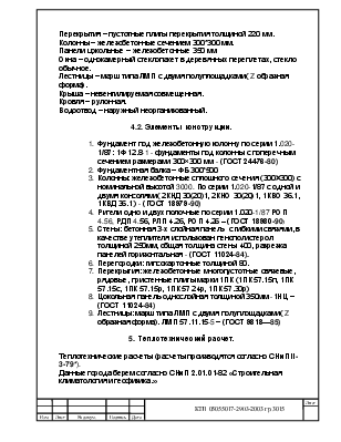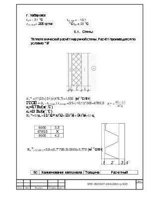 Наружные стены – самонесущие,  трехслойные  панели из тяжелого бетона, толщиной 400 мм. В качестве утеплителя используется пенополистерол λ=0.052  [Вт /(м 0С)] толщиной 250 мм.