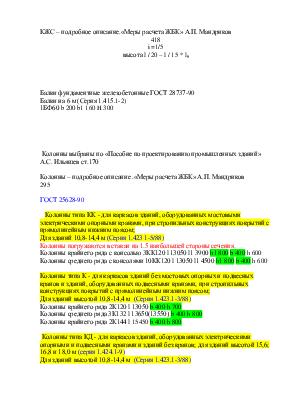 Колонны типа КД - для каркасов зданий, оборудованных электрическими опорными и подвесными кранами и зданий без кранов; для зданий высотой 15,6; 16,8 и 18,0 м (серия 1.424.1-9)
