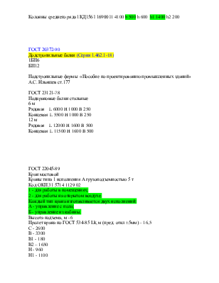 Колонны выбраны по «Пособие по проектированию промышленных зданий» А.С. Ильяшев ст.170