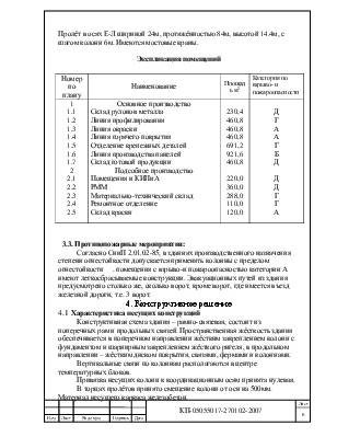 Экспликация помещений дана в табл.6. По санитарной характеристике производственный процесс относится к группе 1в. Степень точности работ – средняя. Количество ворот – 6 шт.