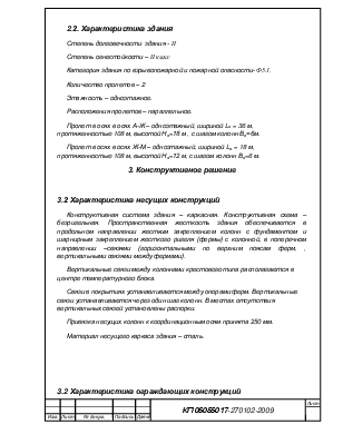 Конструктивная система здания – каркасная. Конструктивная схема – безригельная. Пространственная жесткость здания обеспечивается в продольном направлении жестким закреплением колонн с фундаментом и шарнирным закреплением жесткого ригеля (фермы) с колонной, в поперечном направлении –связями (горизонтальными по верхним поясам ферм, , вертикальными связями между фермами).