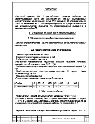 Курсовой проект № 1 разработан согласно заданию на проектирование цеха по изготовлению легких ограждающих металлических конструкций, тема №7, вариант 16. Пояснительная записка выполнена на 17 страницах формата А4. Графическая часть на четырех листах формата А1. Проектирование выполнено в соответствии СниП.