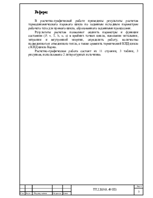 В расчетно-графической работе приведены результаты расчетов термодинамического парового цикла по заданным исходным параметрам рабочего тела для прямого цикла, образованного заданными процессами.