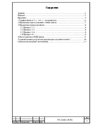 1 График цикла в T, s – и h, s – координатах…………………………………...6