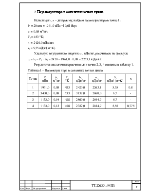 2 Параметры пара в основных точках цикла……………………...….…….…..7