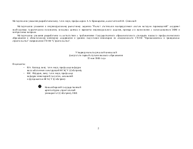 Методические указания разработаны в соответствии с требованиями Государственного образовательного стандарта высшего профессионального образования к обязательному минимуму содержания и уровню подготовки инженеров по специальности 270102 "Промышленное и гражданское строительство" направления 270100 "Строительство".