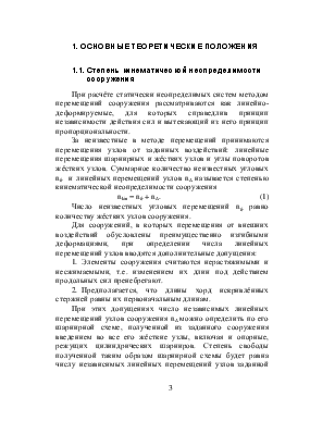 Для сооружений, в которых перемещения от внешних воздействий обусловлены преимущественно изгибными деформациями, при определении числа линейных перемещений узлов вводятся дополнительные допущения: