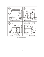 Рис.1,в: nq = 3 (узлы A, B, С); nD = W = 2 × 7 – 6 – 6 = 2 (узлы шарнирной схемы 1–7; стержни, соединяющие эти узлы, 12, 23, 34, 45, 56, 67; опорные связи 11', 22', 33', 55', 66', 77'); nkin = 3 + 2 = 5.