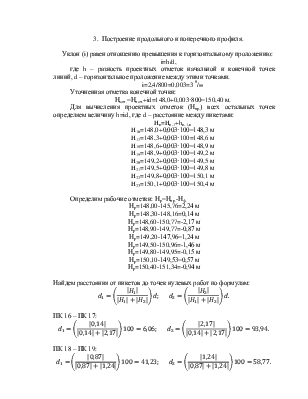 Для вычисления проектных отметок (Нпр.) всех остальных точек определяем величину h=id, где d – расстояние между пикетами: