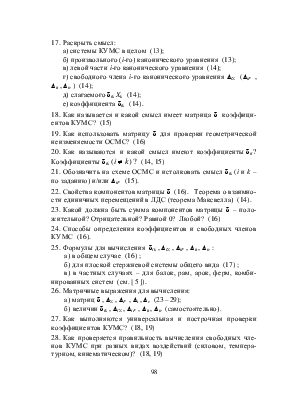 29. Почему КУМС можно истолковывать как разрешающие уравнения задачи расчёта СНС (синтез статической, кинема-тической и физической сторон задачи) ( cм. [ 5 ] ).