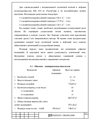 Принятое размещение жилого дома удовлетворяет все нормативные требования СНиПов. На данной площадке возможно размещение одноподъездного жилого дома общей жилой площадью на этаже 480 м2 по 4 квартиры.