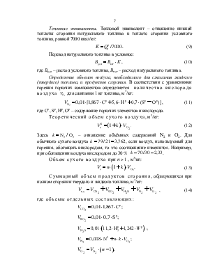 Исходными данными для расчета являются вид топлива, конструкция топливосжигающего устройства (горелки), определяющая величину коэффициента расхода воздуха n(см. табл. 1), степень обогащения воздуха кислородом и температуры подогрева топлива и воздуха.