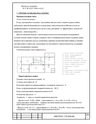 Конструктивная схема здания – рамно-связевая, состоит из поперечных рам и связей. Пространственная жесткость здания обеспечивается в поперечном направлении жестким закреплением колонн с фундаментами и шарнирным закреплением жесткой  фермы с колонной. В продольном направлении – жестким диском покрытия и связями (подстропильными конструкциями, стропильными конструкциями (плиты типа КЖС), горизонтальными по верхним поясам ферм, продольными и поперечными связевыми фермами у торцов пролётов, вертикальными связями между фермами).