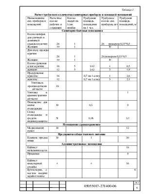 Расчет требуемого количества санитарных приборов и площадей помещений