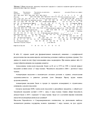 Таблица 1 Общая численность населения, численность городского и сельского населения крупных регионов и отдельных стран мира (млн. человек)