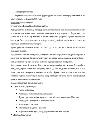 Арендованную под фирму площадь занимают торговый зал, производственный цех и административная зона, магазин расположен по адресу г. Мурманск, ул. Самойлово, д.10, на территории бывшей мебельной фабрики. Данная территория имеет удобное расположение, в центре города, удобный заезд на нее, отведено место для стоянки автотранспорта.