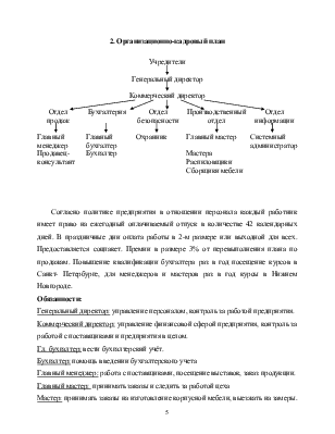 Согласно политике предприятия в отношении персонала каждый работник имеет право на ежегодный оплачиваемый отпуск в количестве 42 календарных дней. В праздничные дни оплата работы в 2-м размере или выходной для всех. Предоставляется соцпакет. Премии в размере 3% от перевыполнения плана по продажам. Повышение квалификации бухгалтера раз в год посещение курсов в Санкт- Петербурге, для менеджеров и мастеров раз в год курсы в Нижнем Новгороде.