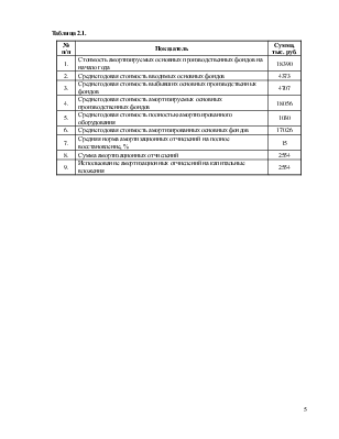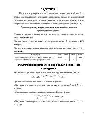 Исчислить и распределить амортизационные отчисления (таблица 2.1.). Сумма амортизационных отчислений определяется исходя из среднегодовой стоимости амортизируемых основных фондов в планируемом периоде и норм амортизационных отчислений, приведенных в исходных данных (таблица 1.3.).