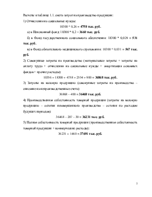 Расчеты к таблице 1.1. смета затрат на производство продукции: