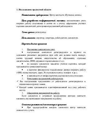 Цель разработки информационной системы: автоматизация учета ищущих работу (постановка и снятие их с учета), оформления учетных карточек соискателей, регистрация предложений работодателя.