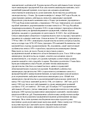 1. История возникновения акционерных обществ в России.                    Акционерные компании одерживают победу над всеми другими формами организации предприятий вследствие присущих им организационно-правовых и экономических особенностей. В разное время в России действовало более четырех тысяч акционерных предприятий. Как само понятие акционерная компания, так и важнейший правовой принцип, на котором она основана ограничение ответственности акционеров по делам компании, были известны российскому законодательству с 18 века. До издания манифеста 1 января 1807 года в России, по существующим данным, действовало лишь пять акционерных компаний. Продолжали существовать возникшие еще в 18 веке три компании учрежденная в 1755 году Водолазная компания, открывшаяся 1782 году Акционерная для строения кораблей компания и реорганизованная на новых началах в 1799 году Российско-Американская компания. В середине 1830-х годов начинают учреждаться общества для приобретения уже функционировавших предприятий, главным образом фабрично-заводских, и расширения их деятельности. В 1869 г. был опубликован Список акционерным обществам и товариществам на паях по порядку учреждения с указанием их основных капиталов. Список включал 281 компанию, учрежденную с 1799 по 1868 г. В 1870 г. акционерное учредительство вступило в период подъема, когда за четыре года 1870-1873 было учреждено 259 компаний. Большинство этих компаний было торгово-промышленными. Но, несомненно, самой замечательной особенностью начала 1870-х годов было учредительство акционерных банков. Никогда ни до этого, ни после, Россия не знала такого размаха предпринимательской активности в области банковского дела. Уже к 1880-м годам акционерное учредительство, во-первых, охватило все основные отрасли промышленности, а во-вторых, его уровень примерно соответствовал уровню развития каждой из этих отраслей в то время. Последнее десятилетие 19 века было периодом невиданного еще в России усиления темпов акционерного учредительства. Оно было составной частью и одним из проявлений общеэкономического подъема того времени. Важнейшей особенностью акционерного учредительства 1890-х годов является усилившаяся связь его с фондовой биржей и коммерческими банками, которые впервые сыграли важную роль в привлечении свободных капиталов в акционерное дело. Общий итог акционерного учредительства за рассматриваемый период весьма значителен. К концу 1901 года число компаний достигло 1506, а их капитал - 2467 млн. руб. К концу 1909 году число всех действовавших в стране акционерных компаний составило 1518, а их капитал - 2819 млн. руб. К ноябрю 1917 года фактически действовали в России с учетом ликвидации и сокращения капитала в годы войны примерно 2850 торгово-промышленных акционерных компаний с номинальным капиталом 6040 млн. руб. Революционные события конца октября-начала ноября 1917 года не были расценены предпринимательскими организациями как форс-мажорные. Было лишь признано необходимым несколько продлить ранее намеченные сроки реализации новых выпусков акций. Лишь к концу мая 1918 года вследствие перехода Советской власти к широкой национализации промышленности процесс акционерного учредительства затухает.