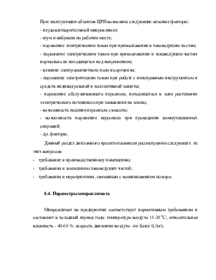 Помещения распределительных устройств содержатся в чистоте. Раз в год, а по потребности и чаще, проводиться уборка коридоров от пыли. Электротехническое оборудование ЦРП чистится по утвержденному графику.  Сварочные работы в ЦРП проводятся только на оборудовании, которое