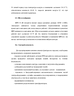 На путях эвакуации имеется рабочее и аварийное освещение, а также указатели для выхода персонала в соответствии с действующими ГОСТами. Предусмотрена система оповещения людей о пожаре через радиоточку цеха.