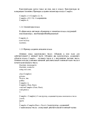 Класс может иметь несколько конструкторов. Тогда инициализация объекта будет выполняться различными способами. Например, можно описать конструктор для задания нулевого комплексного числа и конструктор для задания любого комплексного числа.