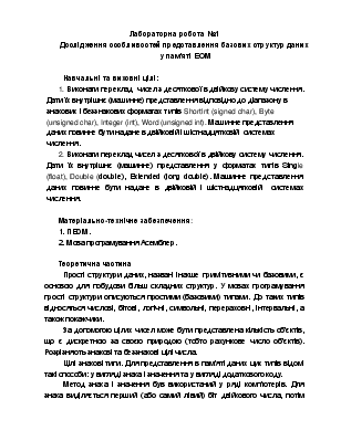 1. Дослідження особливостей представлення базових структур даних у пам'яті ЕОМ