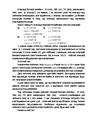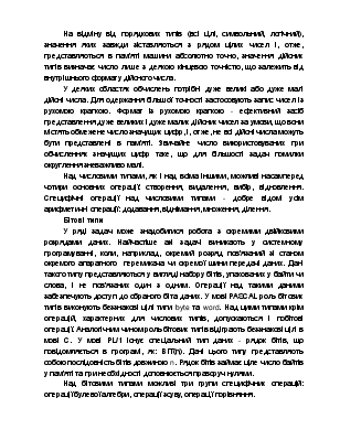 1. Виконати переклад  чисел з десяткової в двійкову систему числення. Дати їх внутрішнє (машинне) представлення відповідно до діапазону в знакових і беззнакових форматах типів Shortlnt (signed char), Byte (unsigned char), Integer (int), Word (unsigned int). Машинне представлення даних повинне бути надане в двійковій і шістнадцятковій  системах числення.