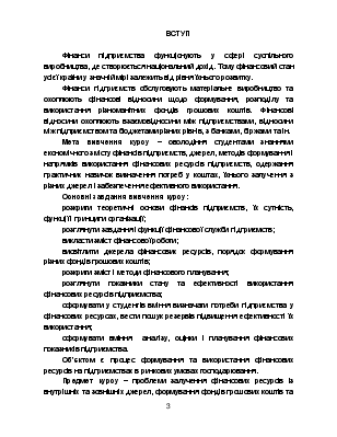Мета вивчення курсу – оволодіння студентами знаннями економічного змісту фінансів підприємств, джерел, методів формування і напрямків використання фінансових ресурсів підприємств, одержання практичних навичок визначення потреб у коштах, їхнього залучення з різних джерел і забезпечення ефективного використання.